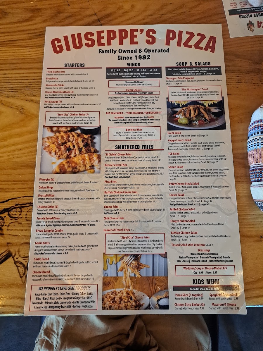 Welcome to Giuseppe's Steel City Pizza, located at 3658 S Nova Rd in Port Orange, FL. This beloved pizza spot is a gem for families and sports enthusiasts alike, offering a delightful menu that caters to every palate.